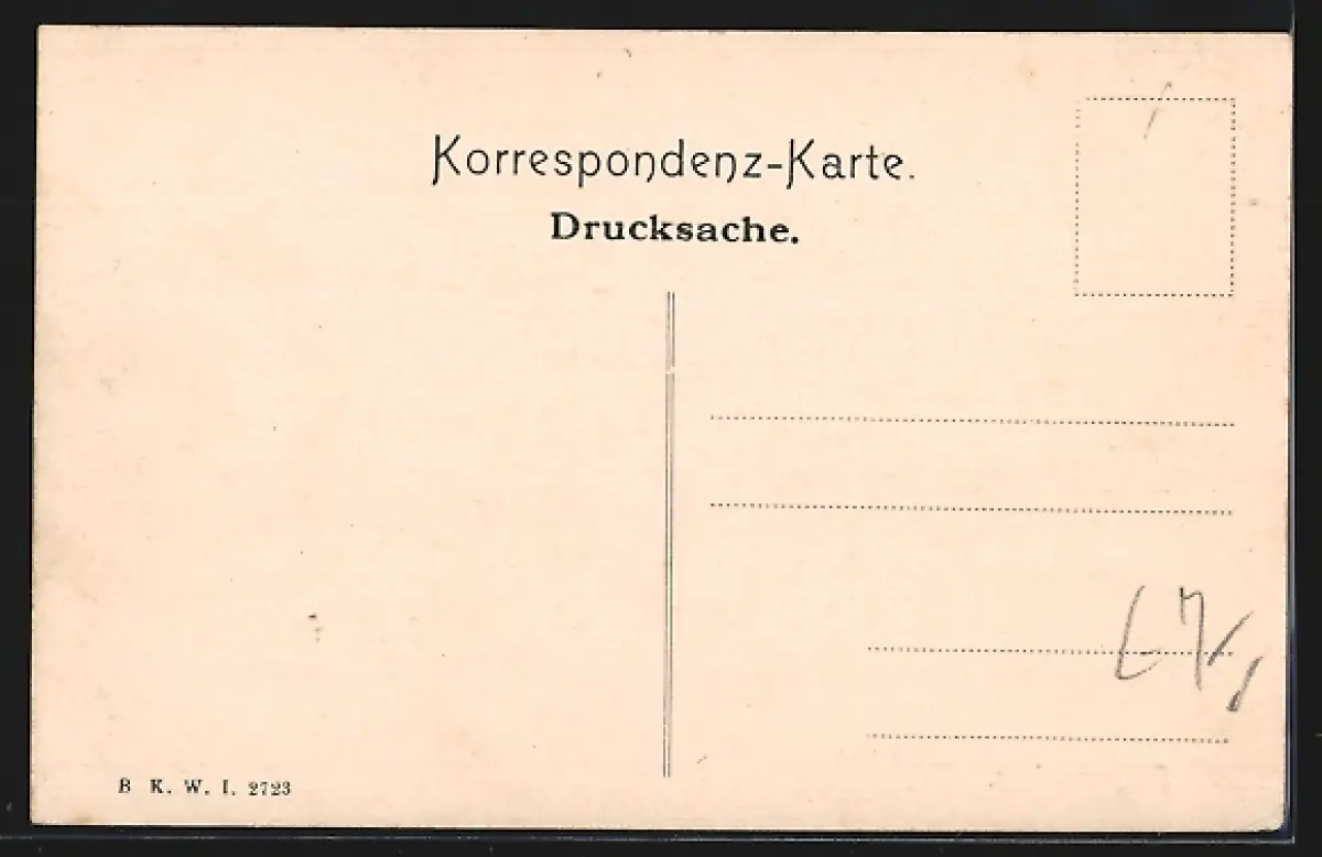 Personenbezogene Daten auf der Rückseite der Karte wurden durch blauen Textmarker unkenntlich gemacht. Die blauen Stellen sind auf die Vorderseite durchgeweicht und wirken sich negativ auf das Postkartenfoto aus