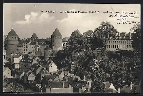 AK Semur, Le Donjon et l`ancien Hôtel Bruzard devenu Monastère de la Visitation en 1922