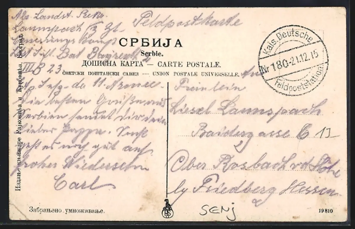 alte Ansichtskarte, gelaufen 1915, Eckknick unten re., guter Zustand