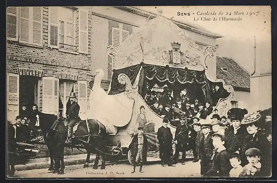 AK Sens, Cavalcade du 24 Mars 1907, Le Char de l`Harmonie
