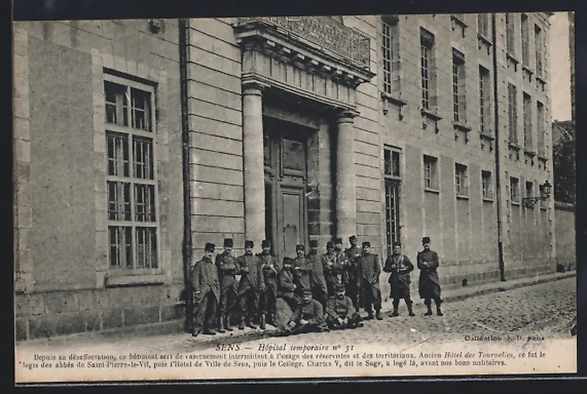 AK Sens, Hôpital temporaire n° 57 avec des soldats devant l`entrée