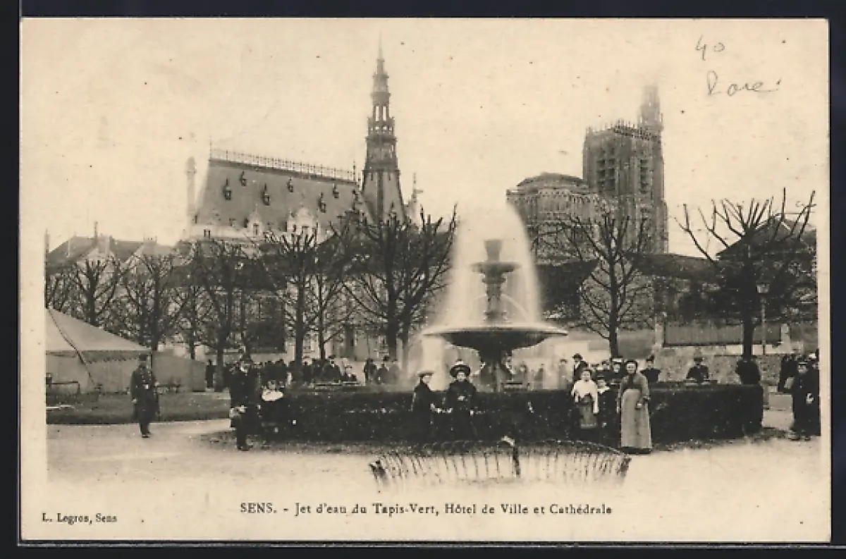 AK Sens, Jet d`eau du Tapis-Vert, Hôtel de Ville et Cathédrale