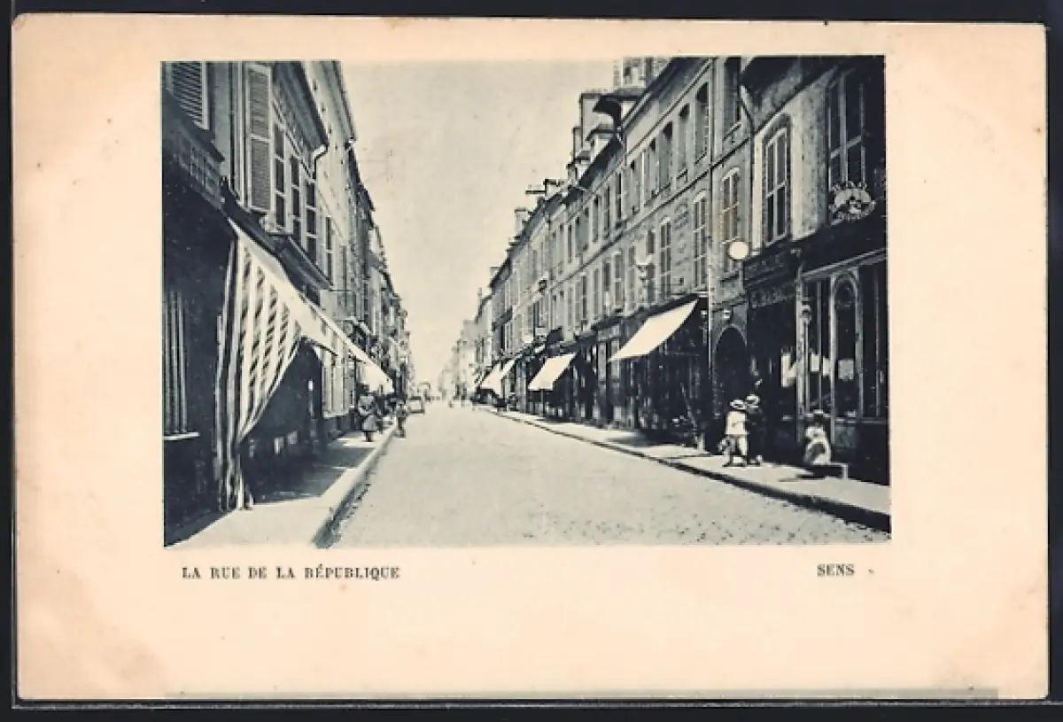 AK Sens, La Rue de la République animée par des passants et des magasins