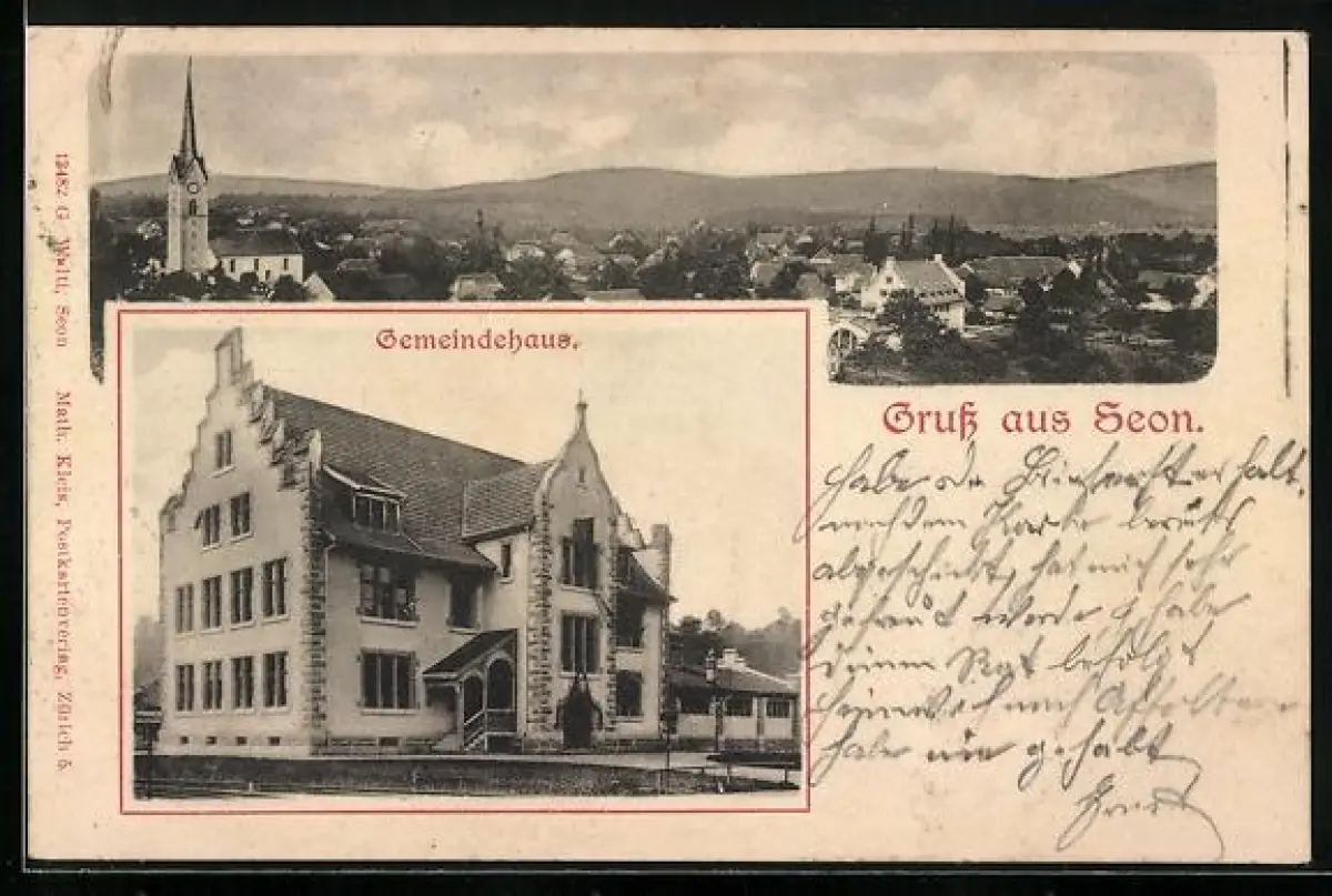 AK Seon, Gemeindehaus, Teilansicht mit Kirche