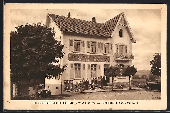 AK Seppois-le-Bas, Café-restaurant de la gare, propr. Meyer-Roth