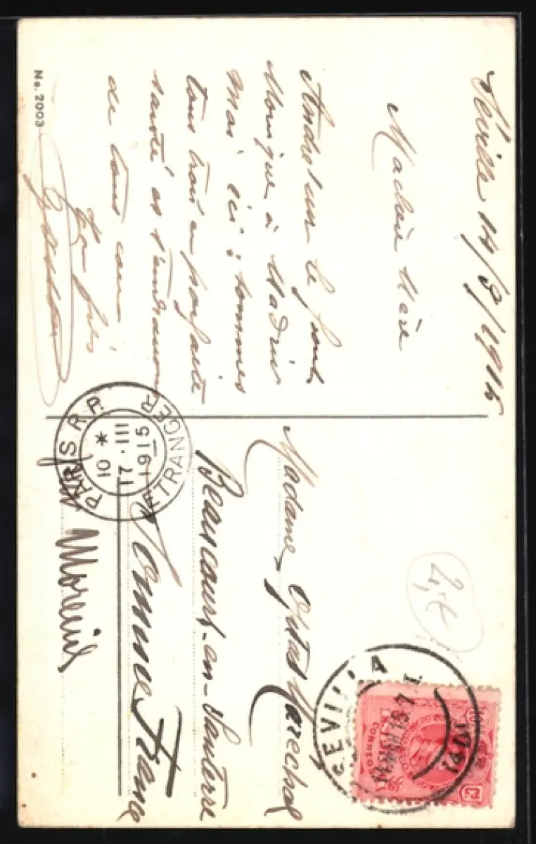 gelaufen 1915, Eckknick u. Abriebspur re. oben, guter Zustand