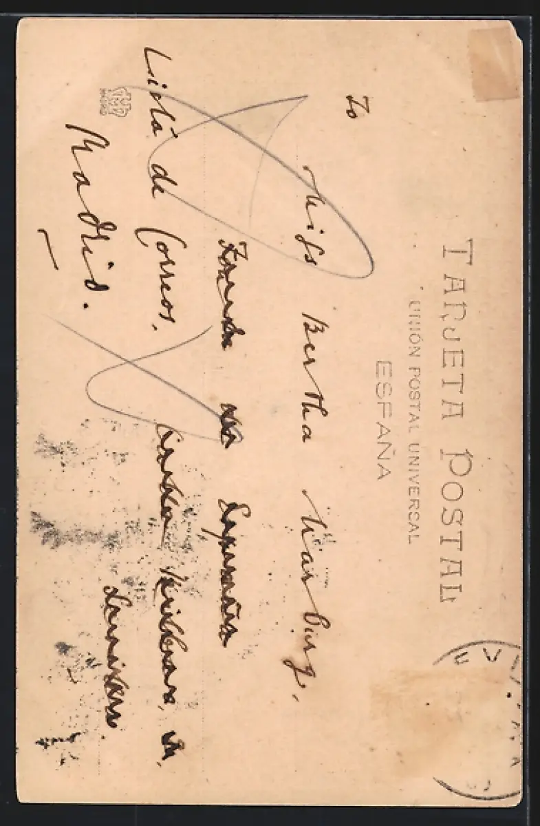 alte Ansichtskarte, gelaufen, Eckknick und Eckschaden li. oben, Briefmarke entfernt, rückseitig Klebe- und Papierreste