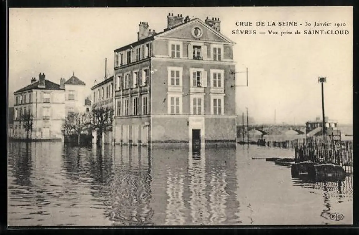 AK Sèvres, Crue de la Seine 1910, Vue prise de Saint-Cloud