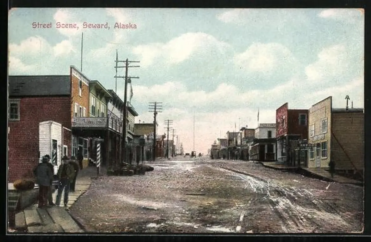 AK Seward, AK, Street Scene, Strassenpartie mit Geschäften