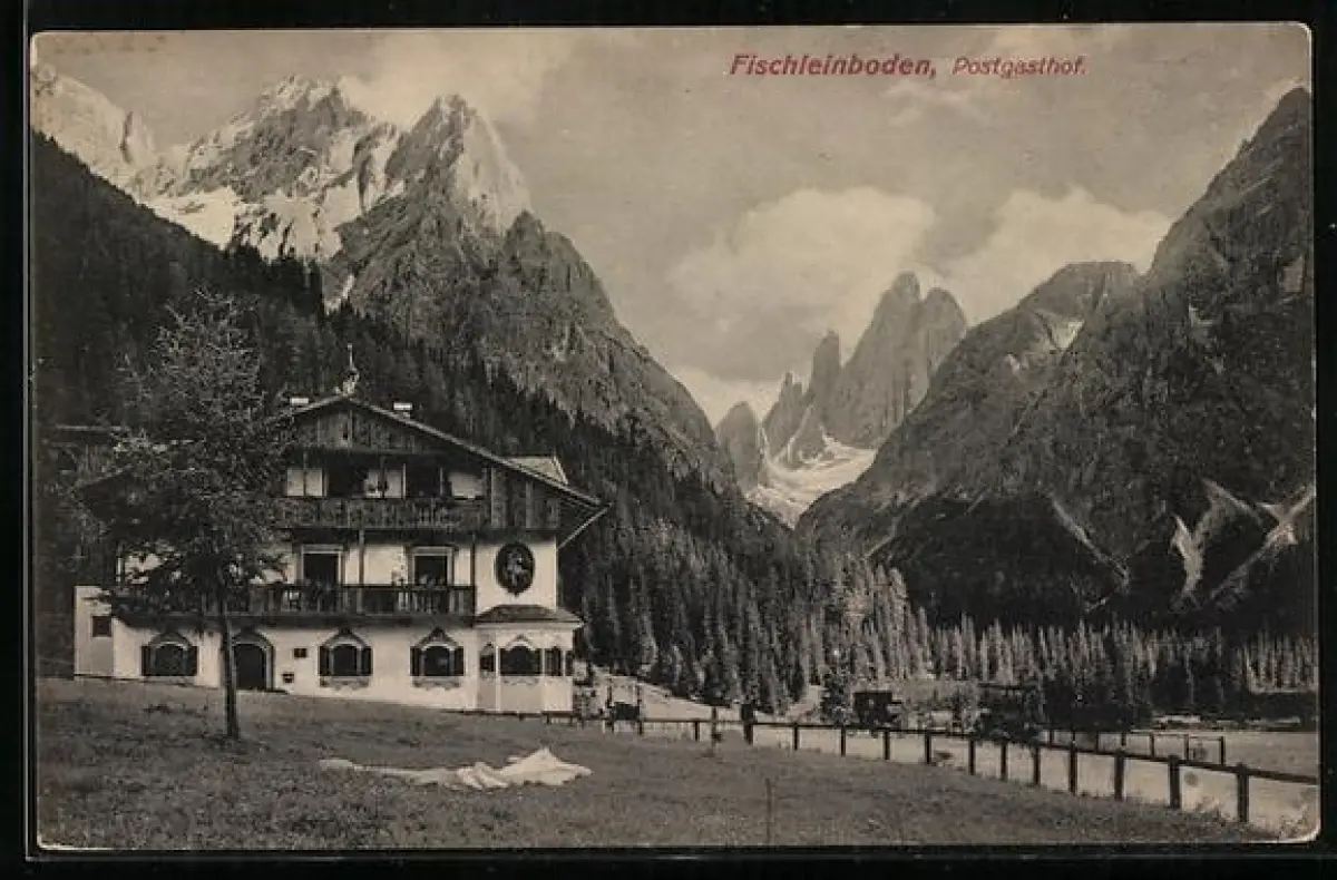 AK Sexten, Postgasthof Fischleinboden mit Gebirgspanorama