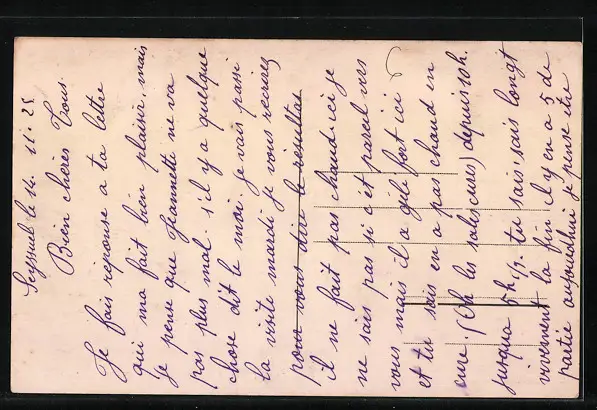 Personenbezogene Daten auf der Rückseite der Karte wurden durch blauen Textmarker unkenntlich gemacht. Die blauen Stellen sind auf die Vorderseite durchgeweicht und wirken sich negativ auf das Postkartenfoto aus