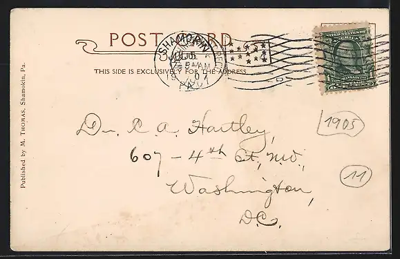 gelaufen 1907, Eckknick re. oben, guter Zustand