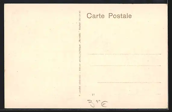 Personenbezogene Daten auf der Rückseite der Karte wurden durch blauen Textmarker unkenntlich gemacht. Die blauen Stellen sind auf die Vorderseite durchgeweicht und wirken sich negativ auf das Postkartenfoto aus