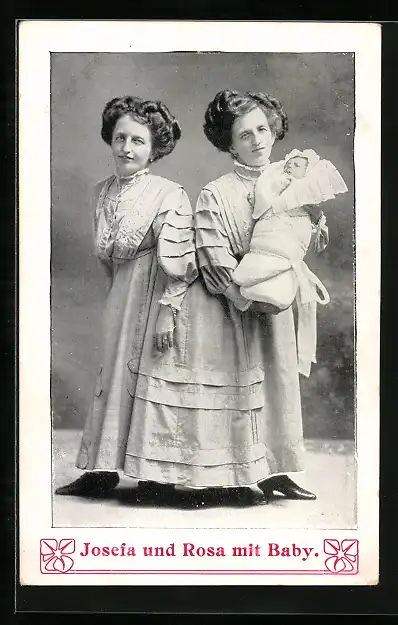 AK Siames. Zwillinge Josefa und Rosa mit Baby