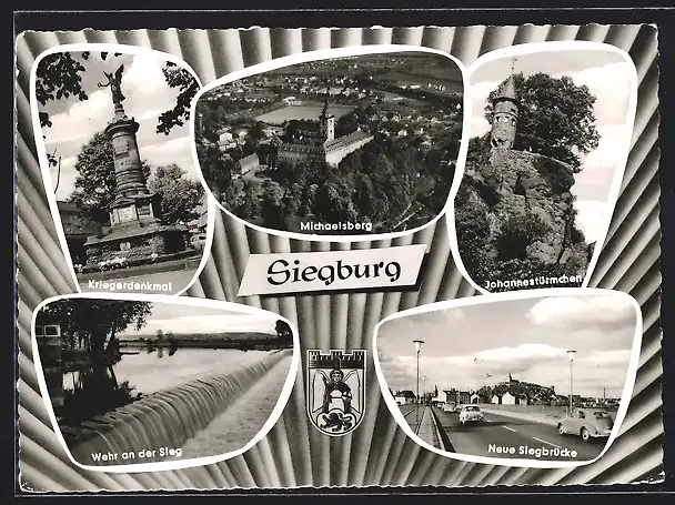 AK Siegburg, Kriegerdenkmal, Wehr a. d. Sieg, Michaelsberg, Johannestürmchen, Neue Siegbrücke