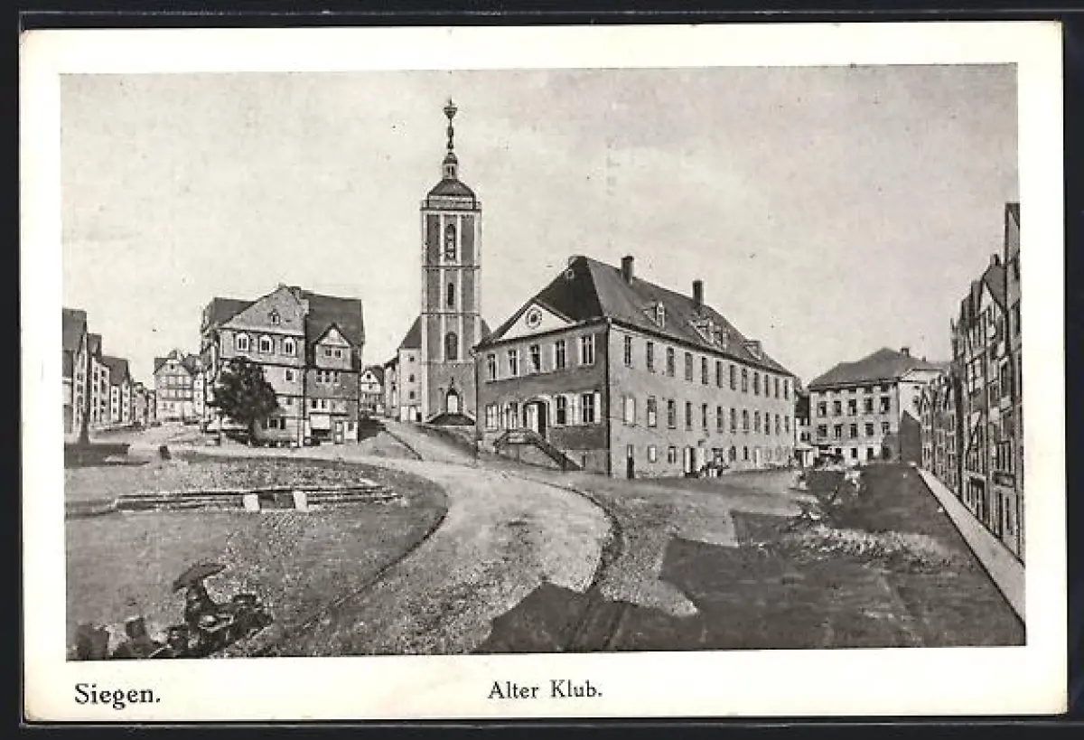 AK Siegen, Alter Klub, Ortspartie mit Platz u. Turm, Panorama