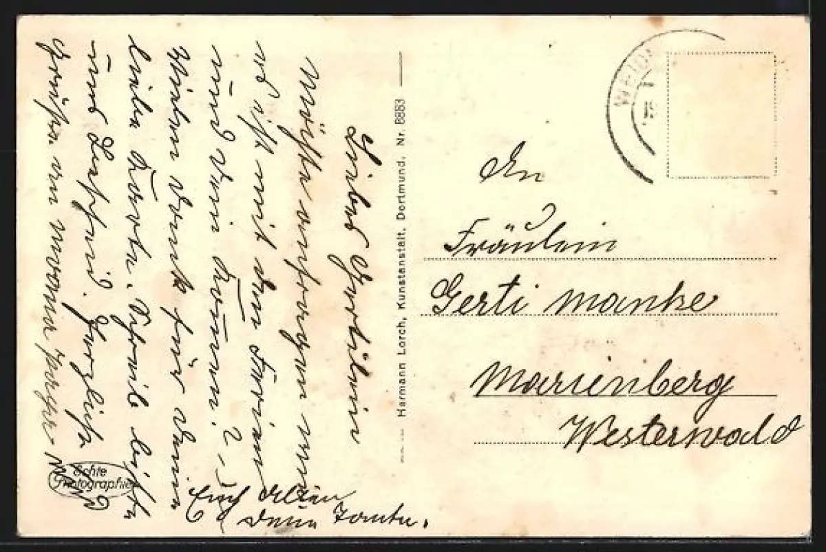alte Ansichtskarte, gelaufen, Briefmarke entfernt, guter Zustand