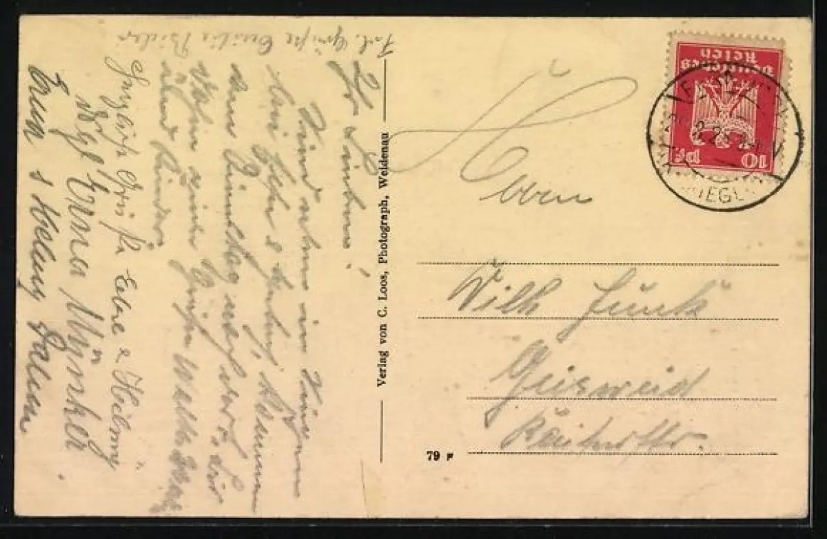 gelaufen 1925, Knick unten mitte, guter Zustand