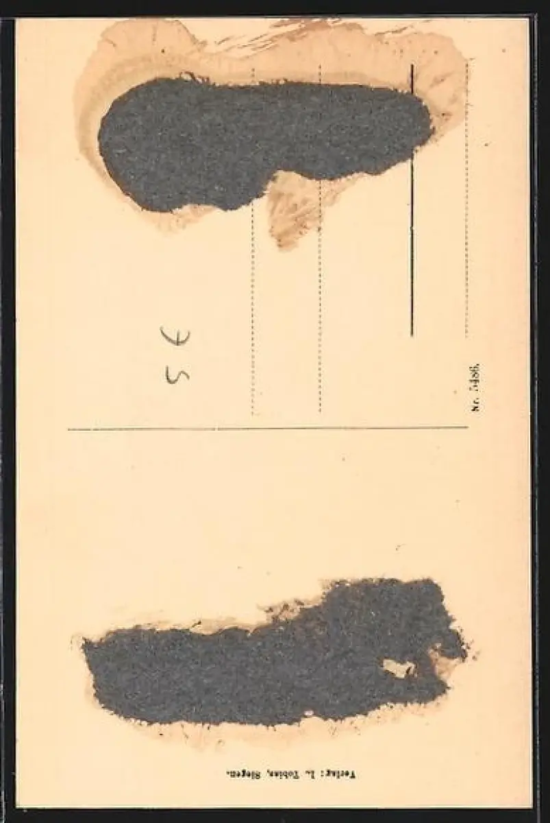 Personenbezogene Daten auf der Rückseite der Karte wurden durch blauen Textmarker unkenntlich gemacht. Die blauen Stellen sind auf die Vorderseite durchgeweicht und wirken sich negativ auf das Postkartenfoto aus