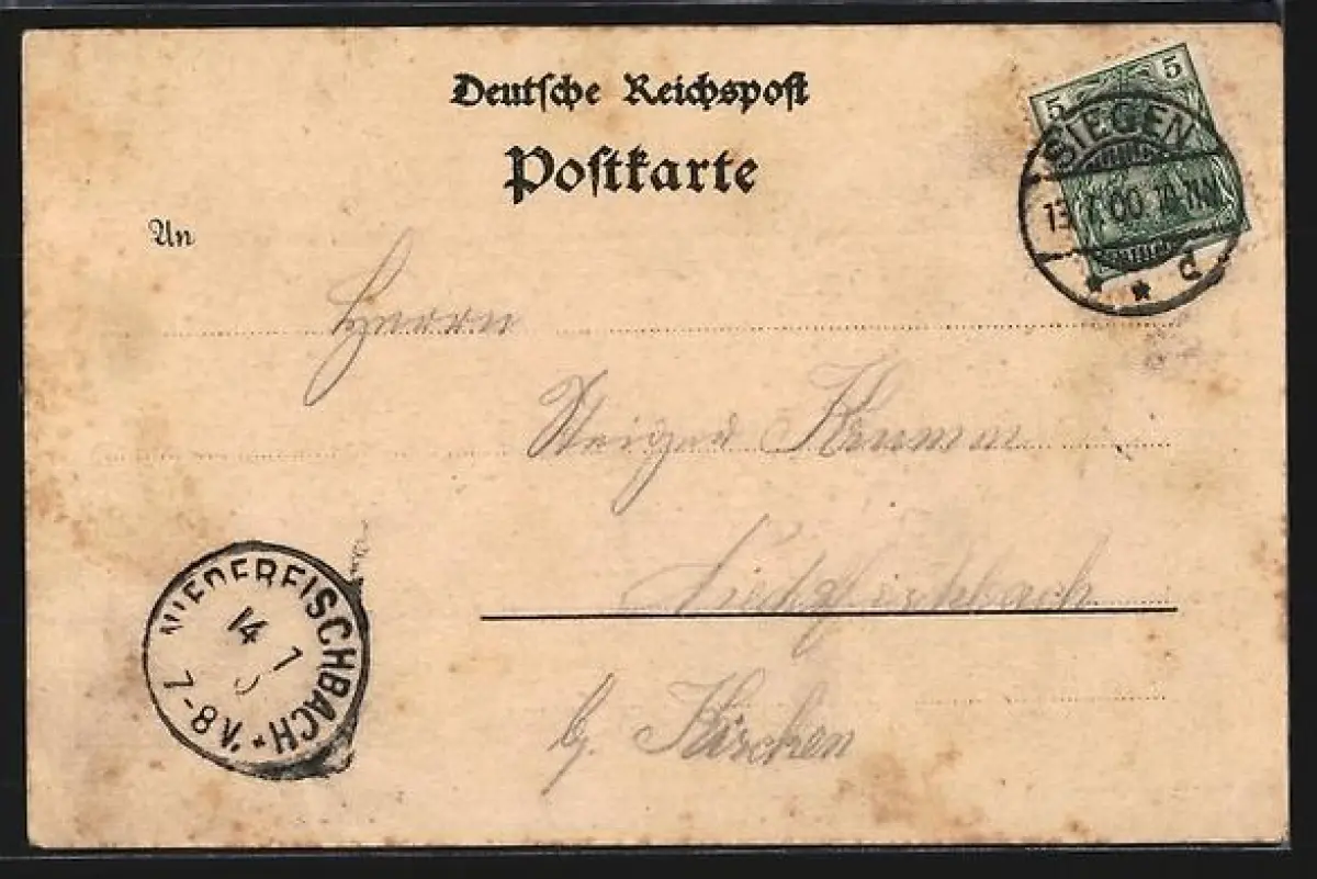 alte Ansichtskarte, gelaufen 1900, Eckknick unten re., Stempelspur, guter Zustand