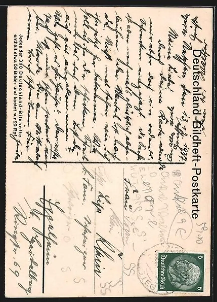 alte Ansichtskarte, gelaufen 1937, Rand unten beschnitten