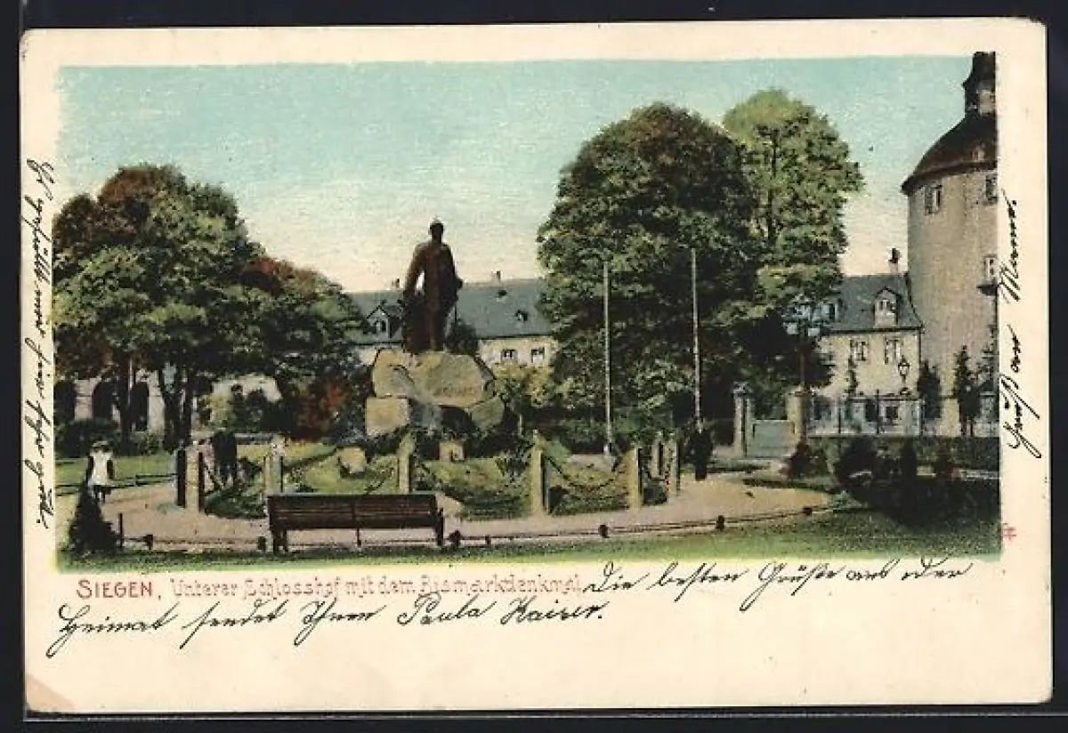AK Siegen, Unterer Schlosshof mit Bismarckdenkmal