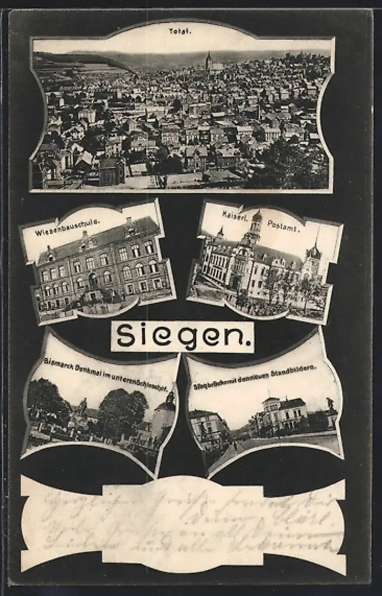 AK Siegen, Wiesenbauschule, Siegbrücke, Postamt