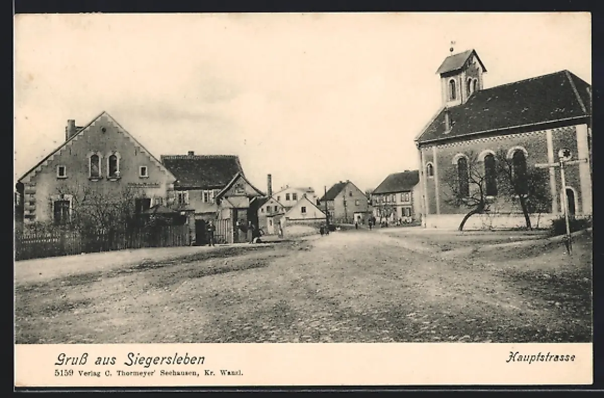 AK Siegersleben, Kirche an der Hauptstrasse