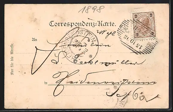 alte Ansichtskarte, gelaufen 1898, Eckknick re. oben, guter Zustand