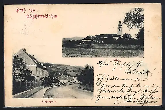 AK Sieghartskirchen, Strassenpartie und Blick zur Kirche