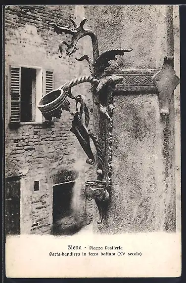 AK Siena, Piazza Postierla, Porta-bandiera in ferro battuto