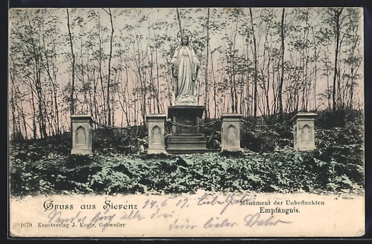 AK Sierenz, Monument de l`Immaculée Conception dans la forêt