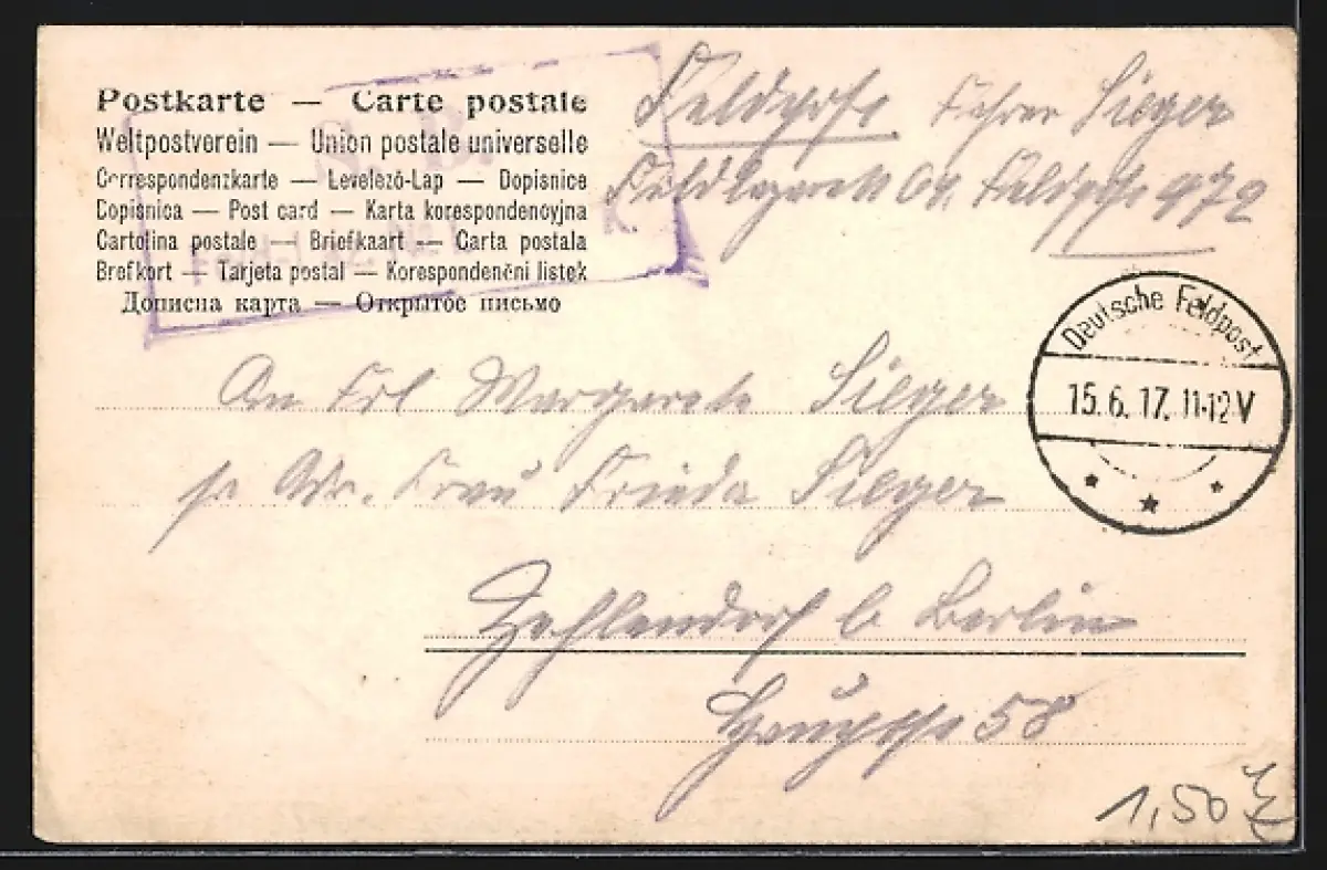 alte Ansichtskarte, gelaufen 1917, guter Zustand