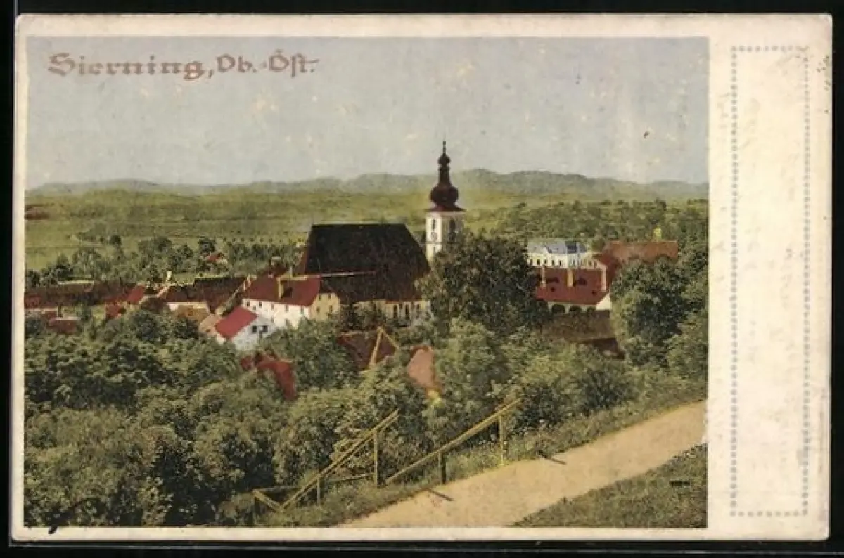 AK Sierning /Ob.-Öst., Ortspanorama mit Kirche