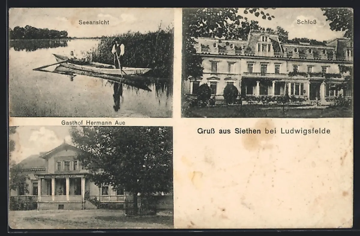 AK Siethen bei Ludwigsfelde, Gasthof Hermann Aue, Schloss, Seeansicht