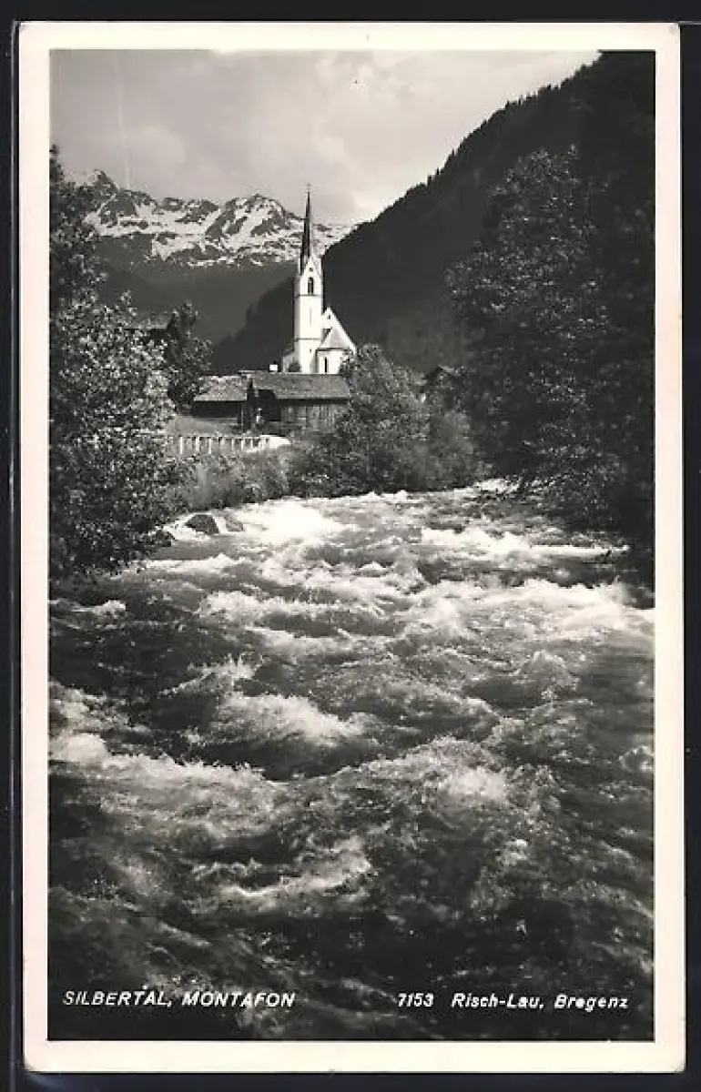AK Silbertal /Montafon, Blick auf Kirche und Gebirge