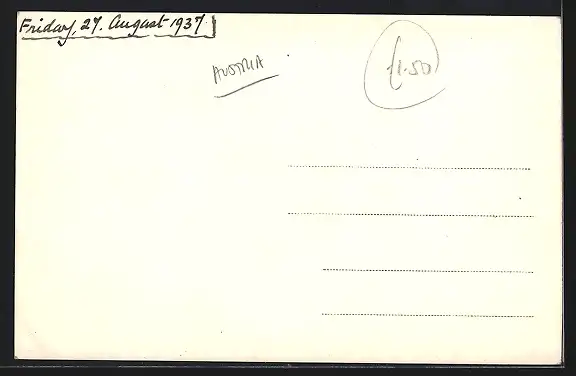 Personenbezogene Daten auf der Rückseite der Karte wurden durch blauen Textmarker unkenntlich gemacht. Die blauen Stellen sind auf die Vorderseite durchgeweicht und wirken sich negativ auf das Postkartenfoto aus