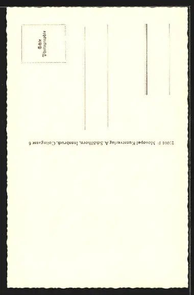 Personenbezogene Daten auf der Rückseite der Karte wurden durch blauen Textmarker unkenntlich gemacht. Die blauen Stellen sind auf die Vorderseite durchgeweicht und wirken sich negativ auf das Postkartenfoto aus