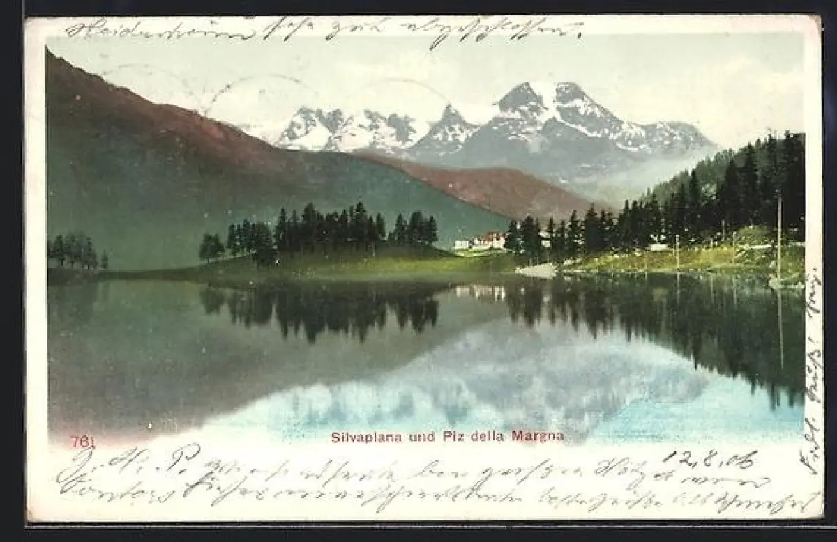 AK Silvaplana, Silvaplana und Piz della Margna vom Wasser aus