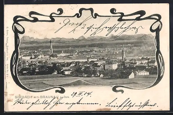 AK Simbach / Inn, Ortsansicht mit Blick auf Braunau am Inn