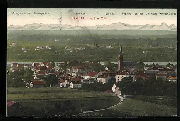 AK Simbach a. Inn, Panorama mit Bergkette