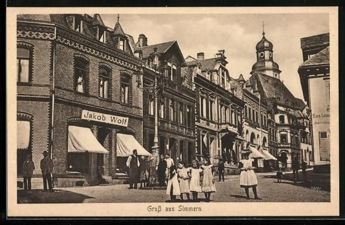 AK Simmern / Hunsrück, Geschäft von Jakob Wolf mit Strassenpartie
