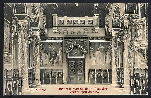 AK Sinaia, Interiorul Bisercei de la Monàstire, Vedere spre intrare
