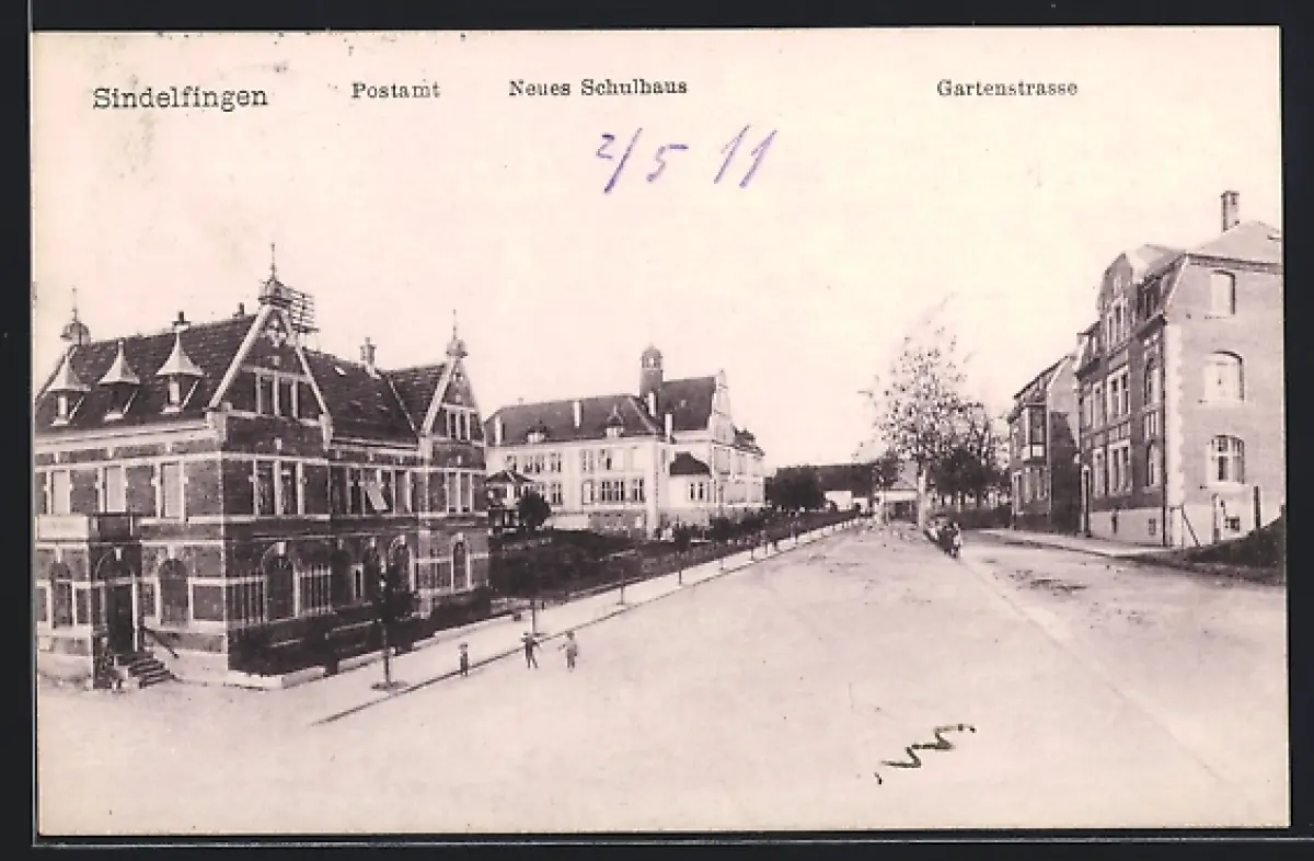 AK Sindelfingen, Postamt, Neues Schulhaus und Gartenstrasse