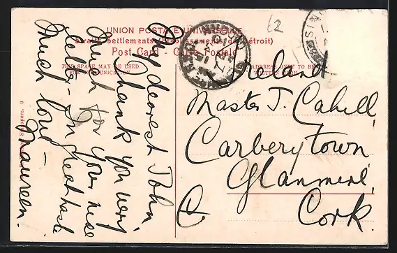 alte Ansichtskarte, gelaufen 1910, Briefmarke entfernt, rückseitig Oberflächenschaden, guter Zustand
