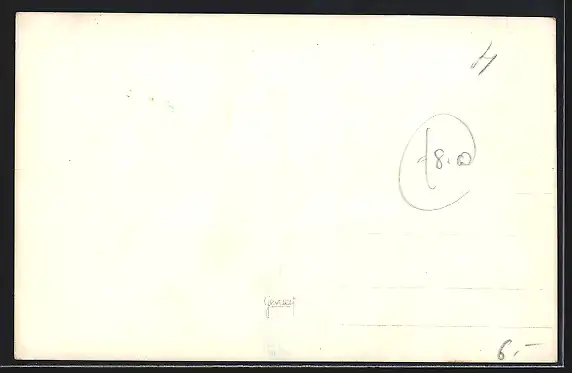 Personenbezogene Daten auf der Rückseite der Karte wurden durch blauen Textmarker unkenntlich gemacht. Die blauen Stellen sind auf die Vorderseite durchgeweicht und wirken sich negativ auf das Postkartenfoto aus