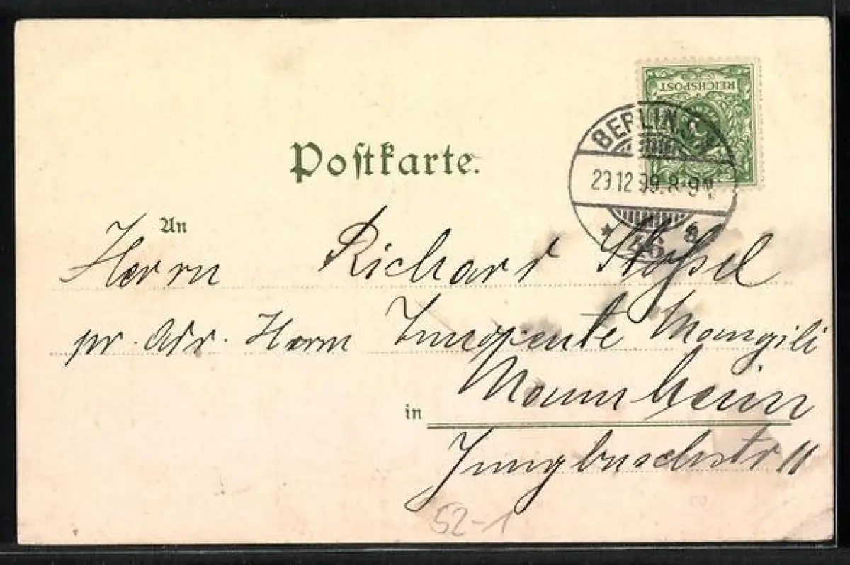 gelaufen 1899, Eckknicke links unten, sonst guter Zustand