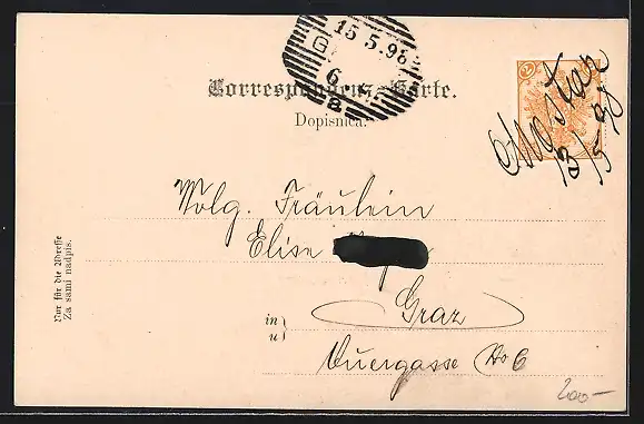 alte Ansichtskarte, gelaufen 1898, Stempelspur, guter Zustand