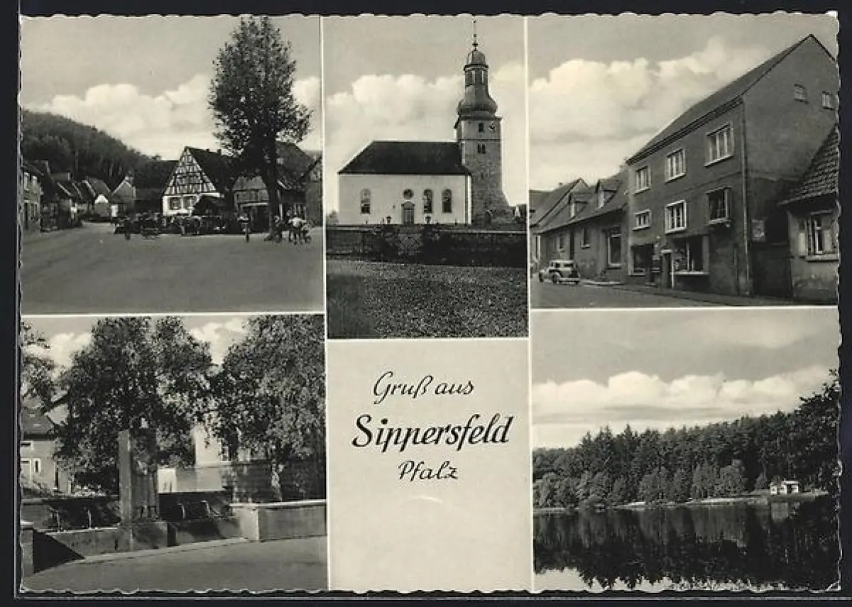 AK Sippersfeld /Pfalz, Kirche, Gemischtwarengeschäft Martha Kolb, Fachwerkhaus