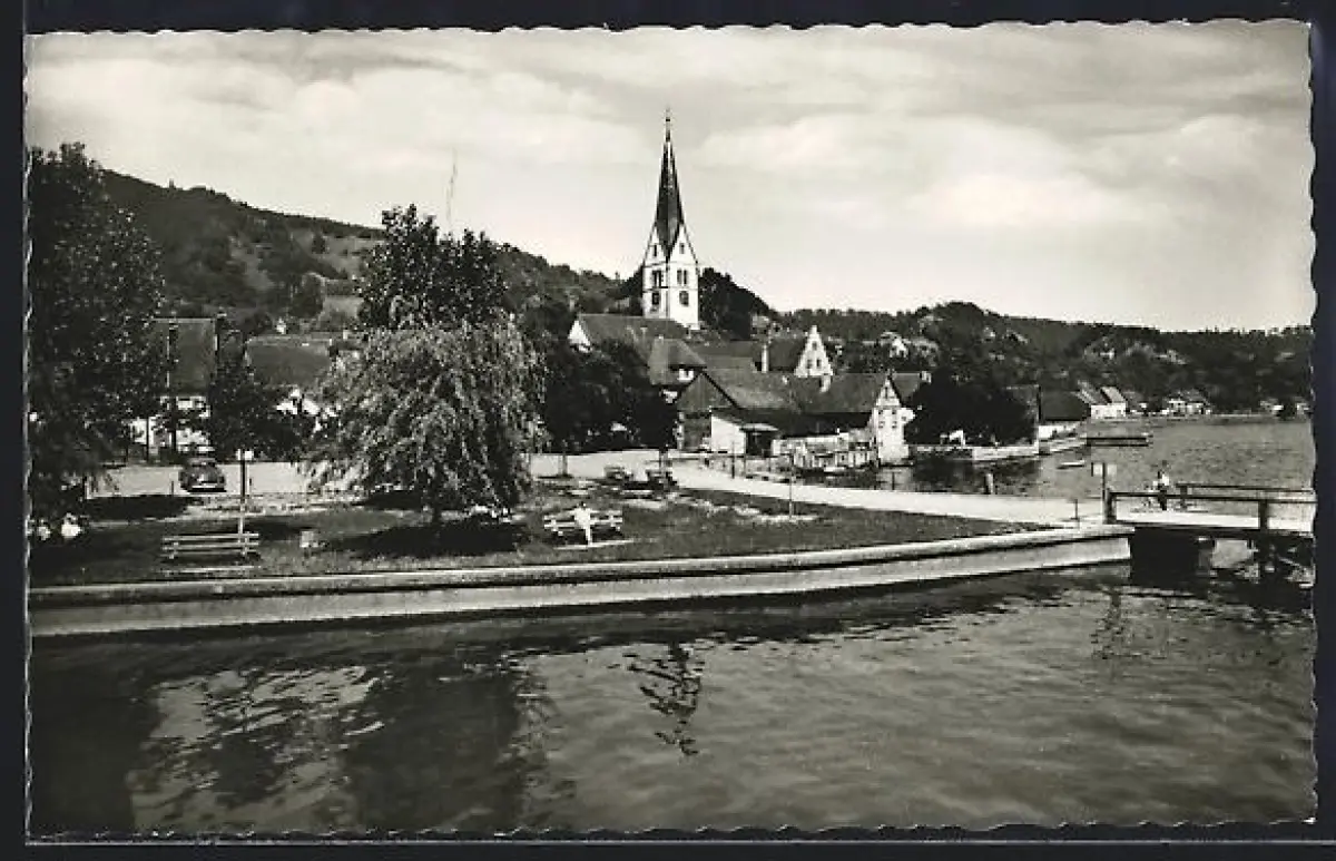 AK Sipplingen am Bodensee, Ortsansicht mit Kirche und Uferpromenade